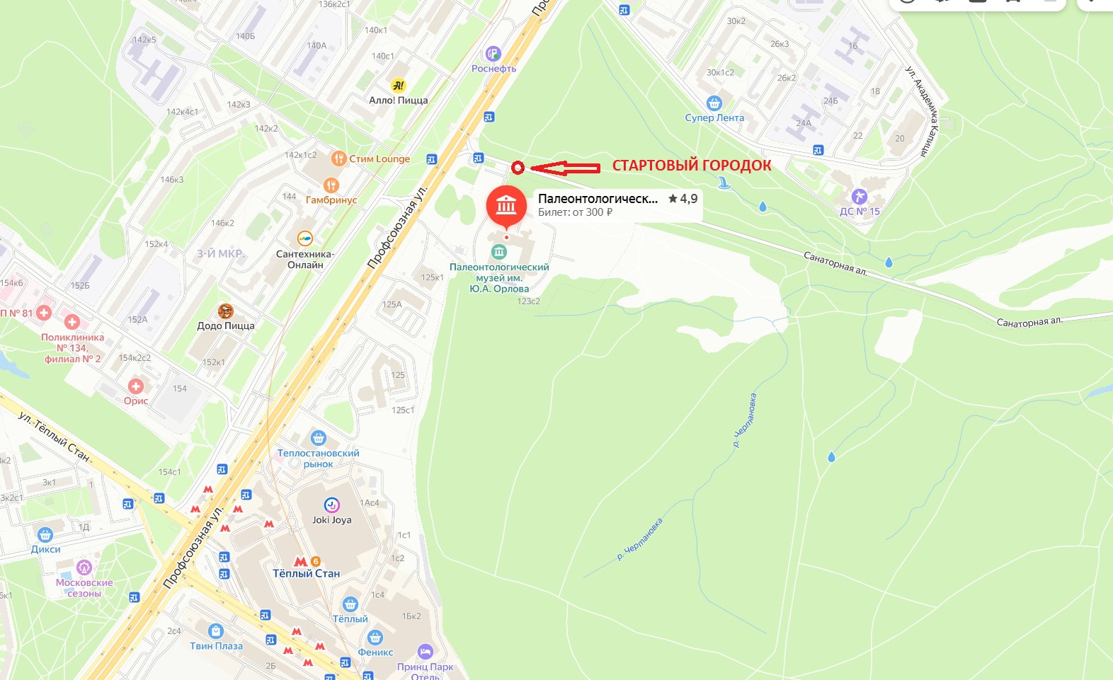 | Адрес старта: Самая высокая геодезическая точка Москвы (Теплый стан) |