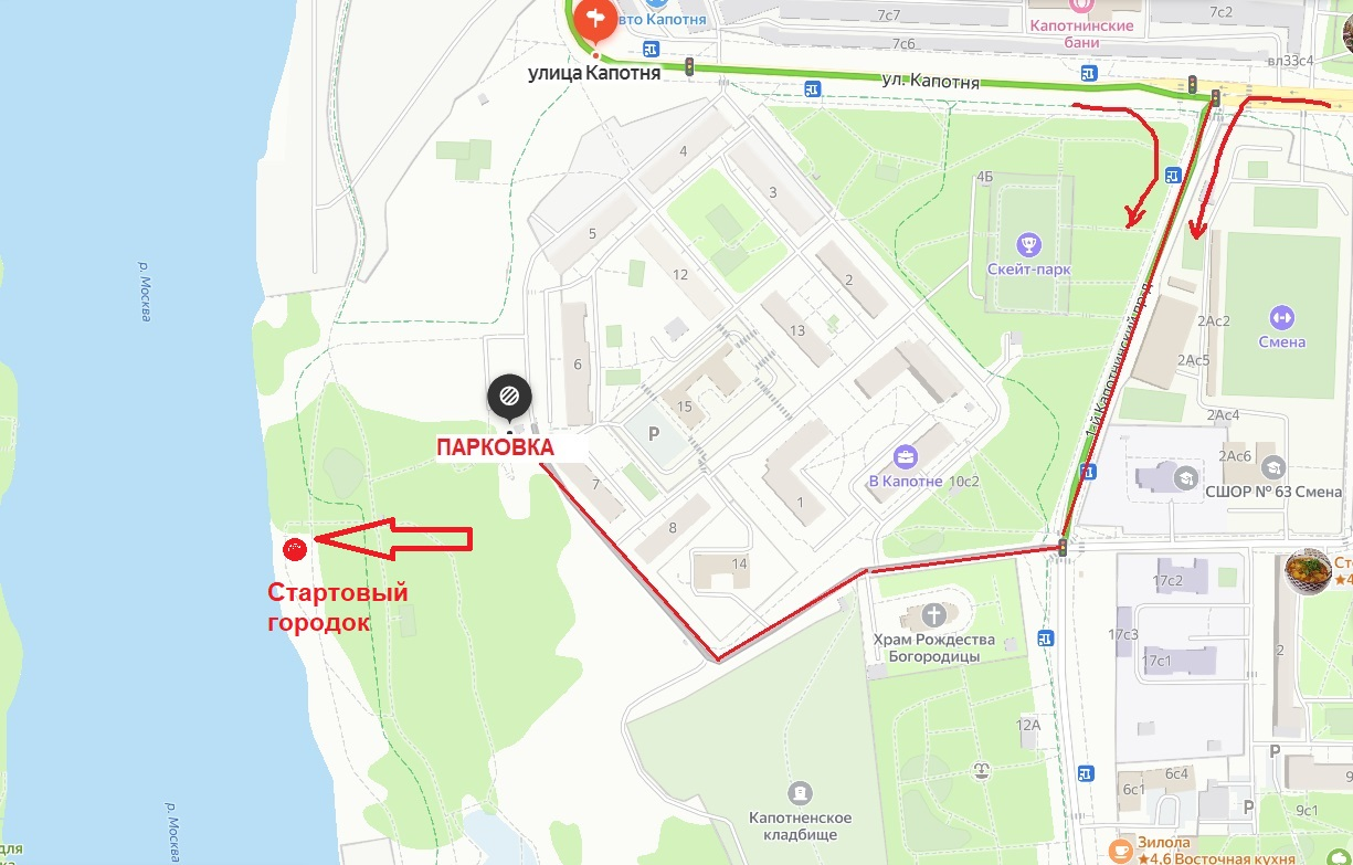 | Адрес старта: Парк на набережной Москвы-реки - самая нижняя геодезическая точка Москвы (КАПОТНЯ) |