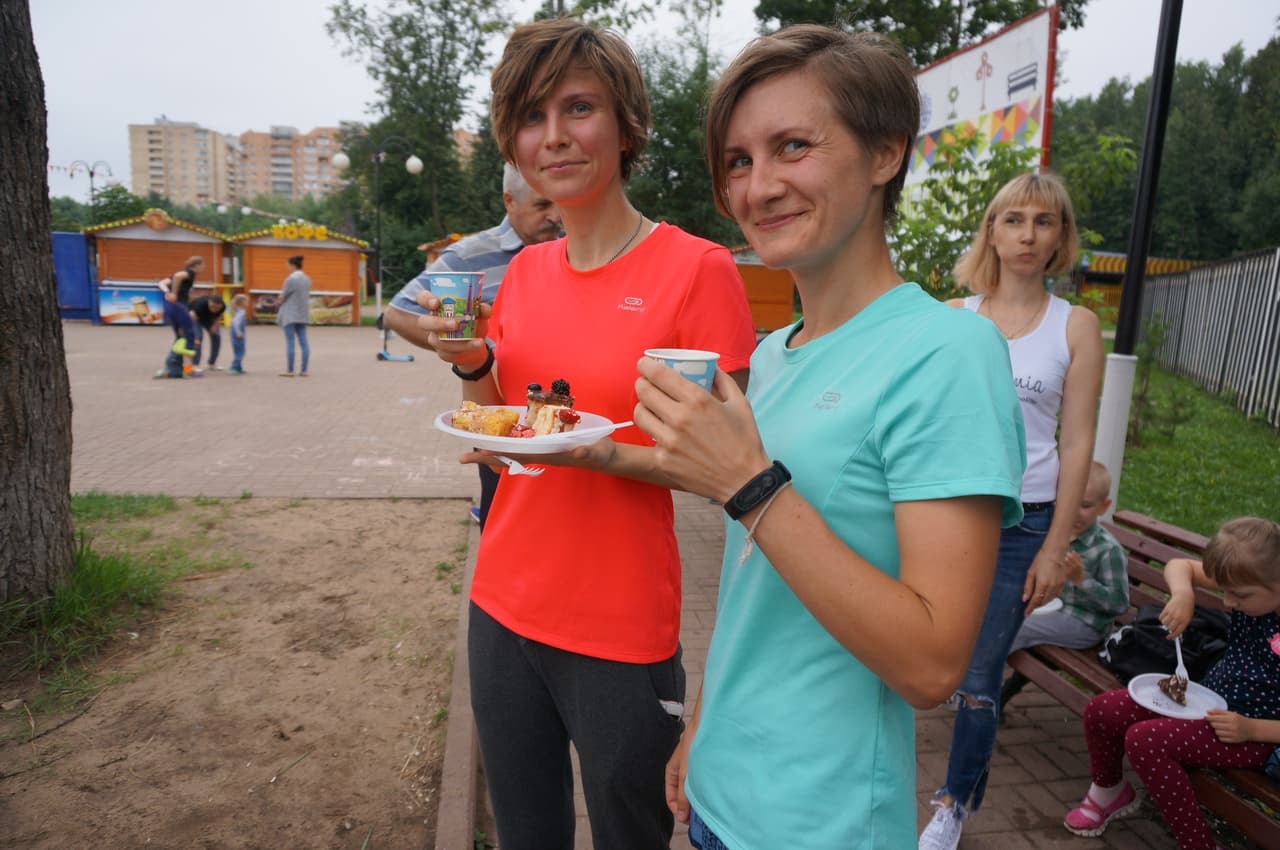 После финиша мы общаемся и наслаждаемся чаем и вкусностями, принесенными с собой.
